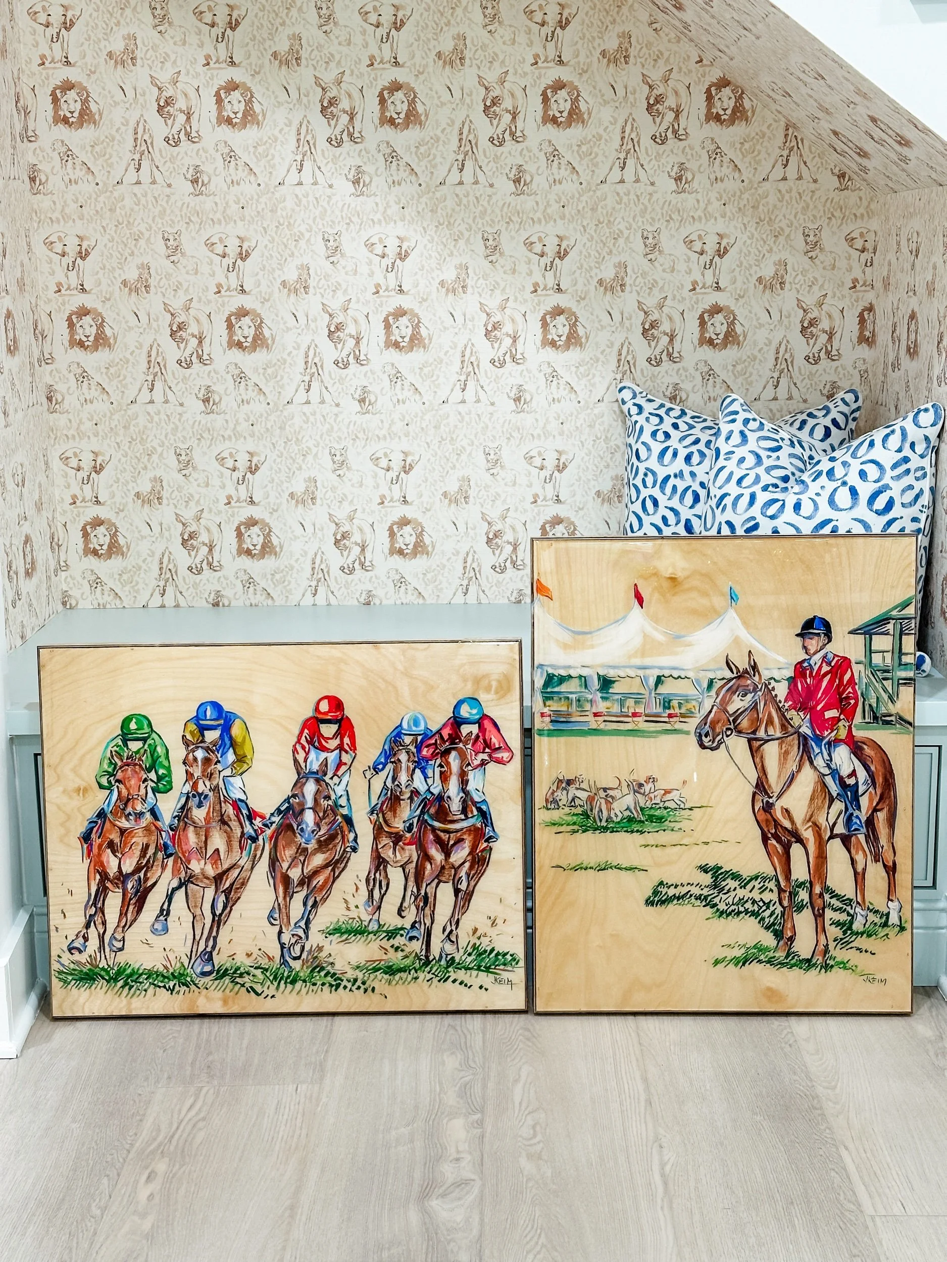 Finished with Resin Pour enhancing the wood grain and melting the pastel to create a painterly finished look.