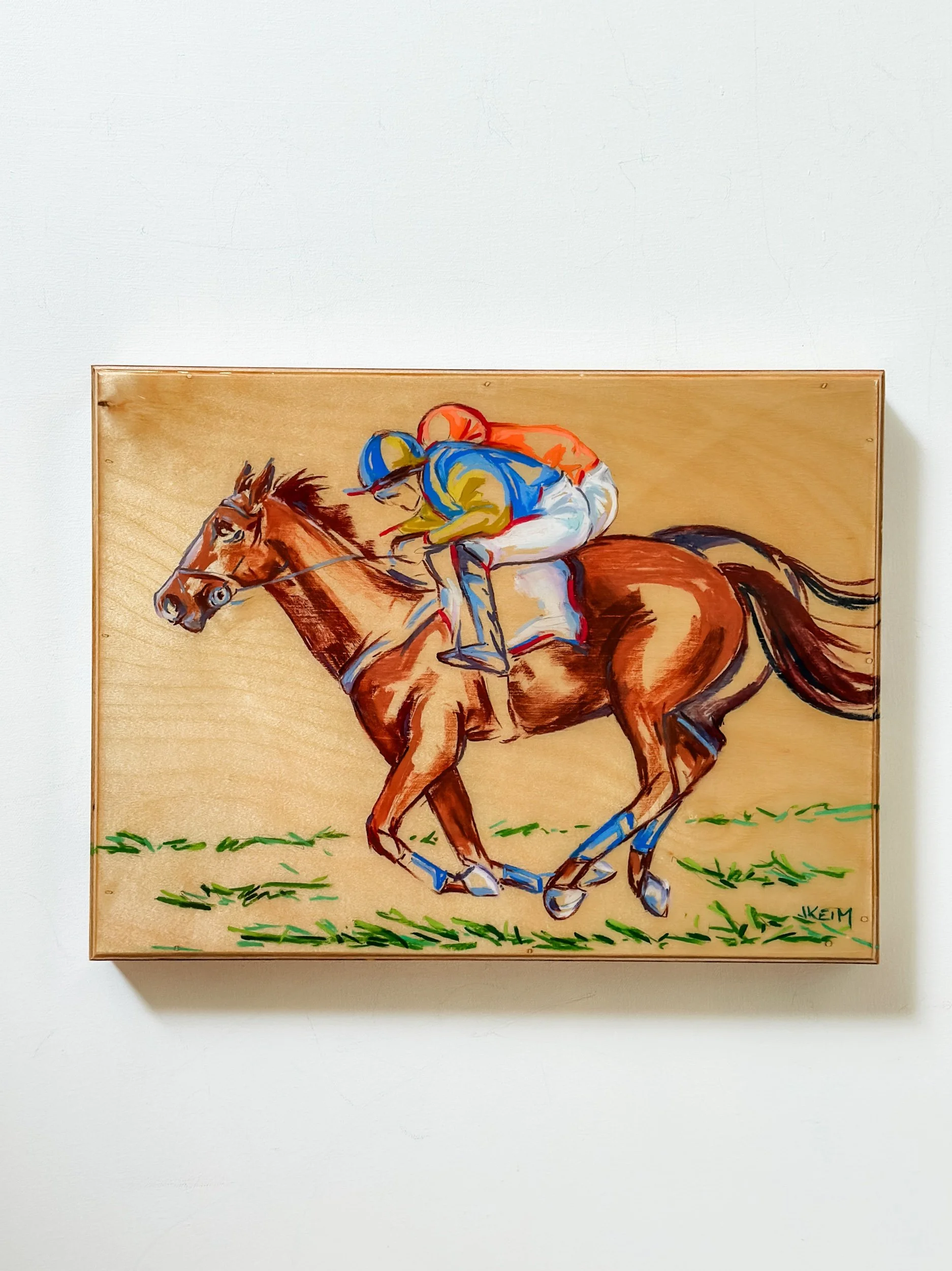 Finished with Resin Pour enhancing the wood grain and melting the pastel to create a painterly finished look.