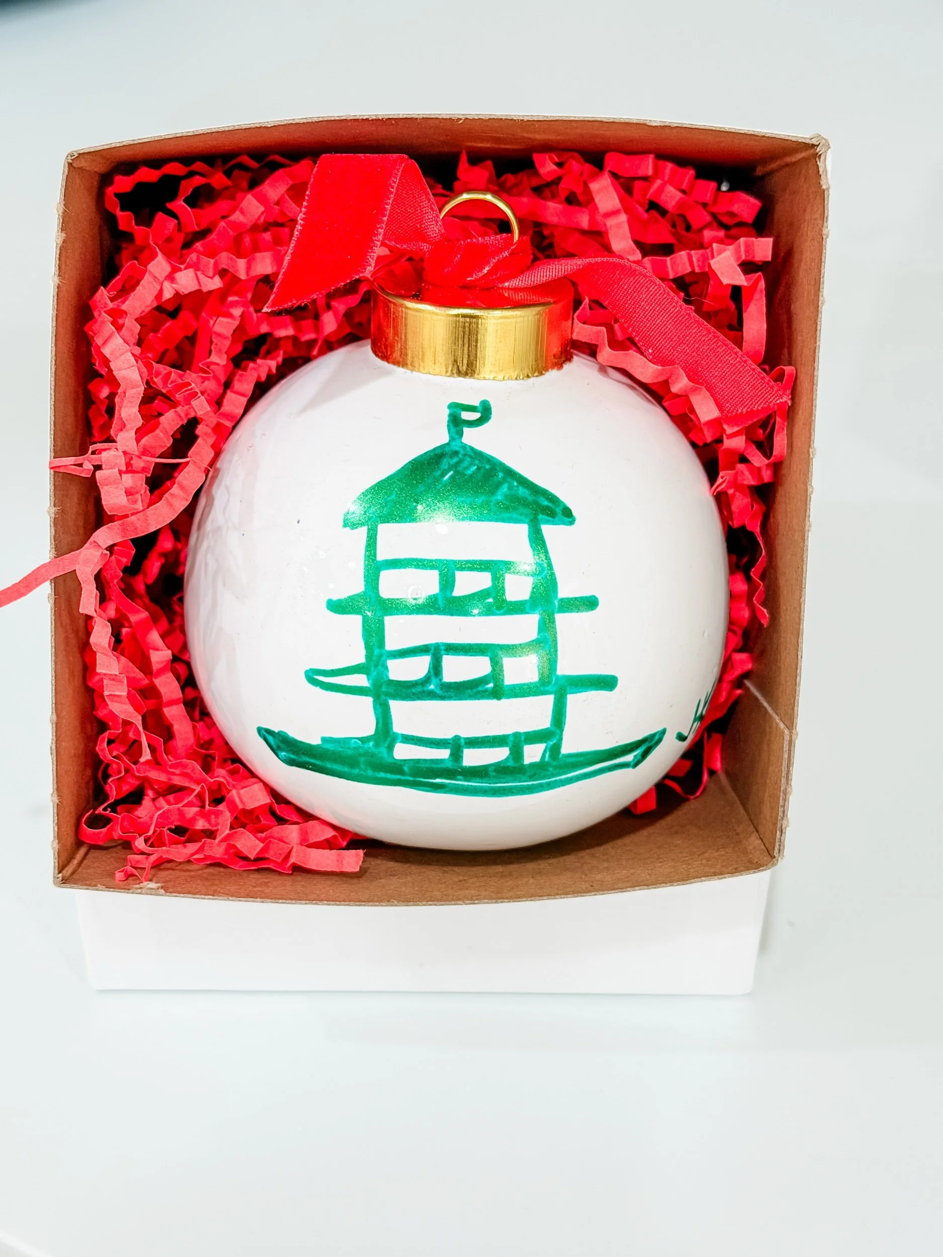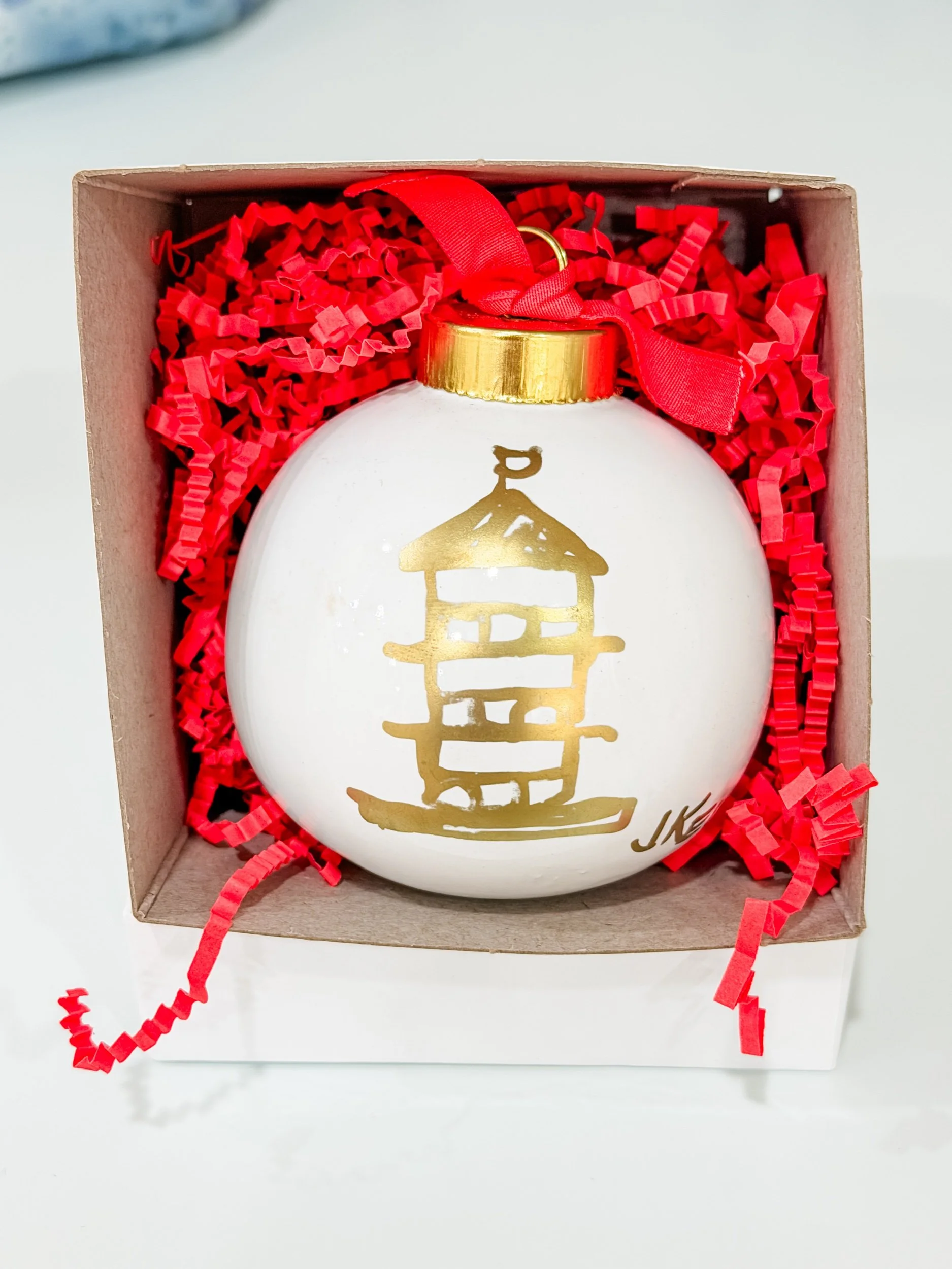 Ceramic lacquered ornament with one long line painting without lifting pen.